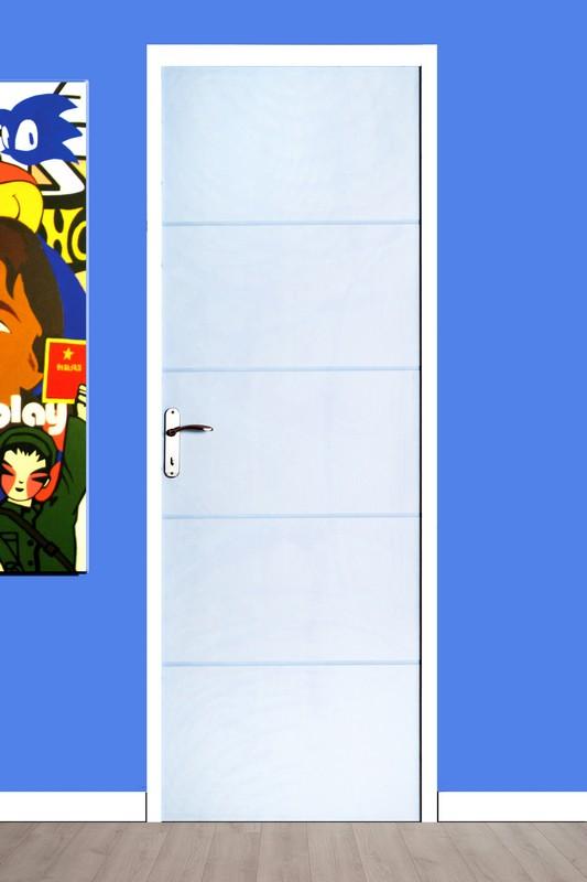 Bloc porte gravée 4 traits horizontaux prépeint. Vantail 40 mm chant droit.