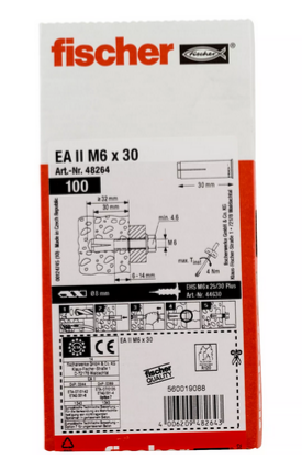 La collerette intégrée empêche la douille d'ancrage de glisser trop profondément dans le trou et assure un montage sans problèmes. Le taraudage métrique permet l'utilisation de vis courantes ou de tiges filetées pour une adaptation optimale à l'application. L'outil de pose machine EMS permet un montage sans efforts, en particulier pour les installations en série. Le plot élastomère de la version courte avec hef 25 mm évite la chute de la cheville avant l'expansion.
