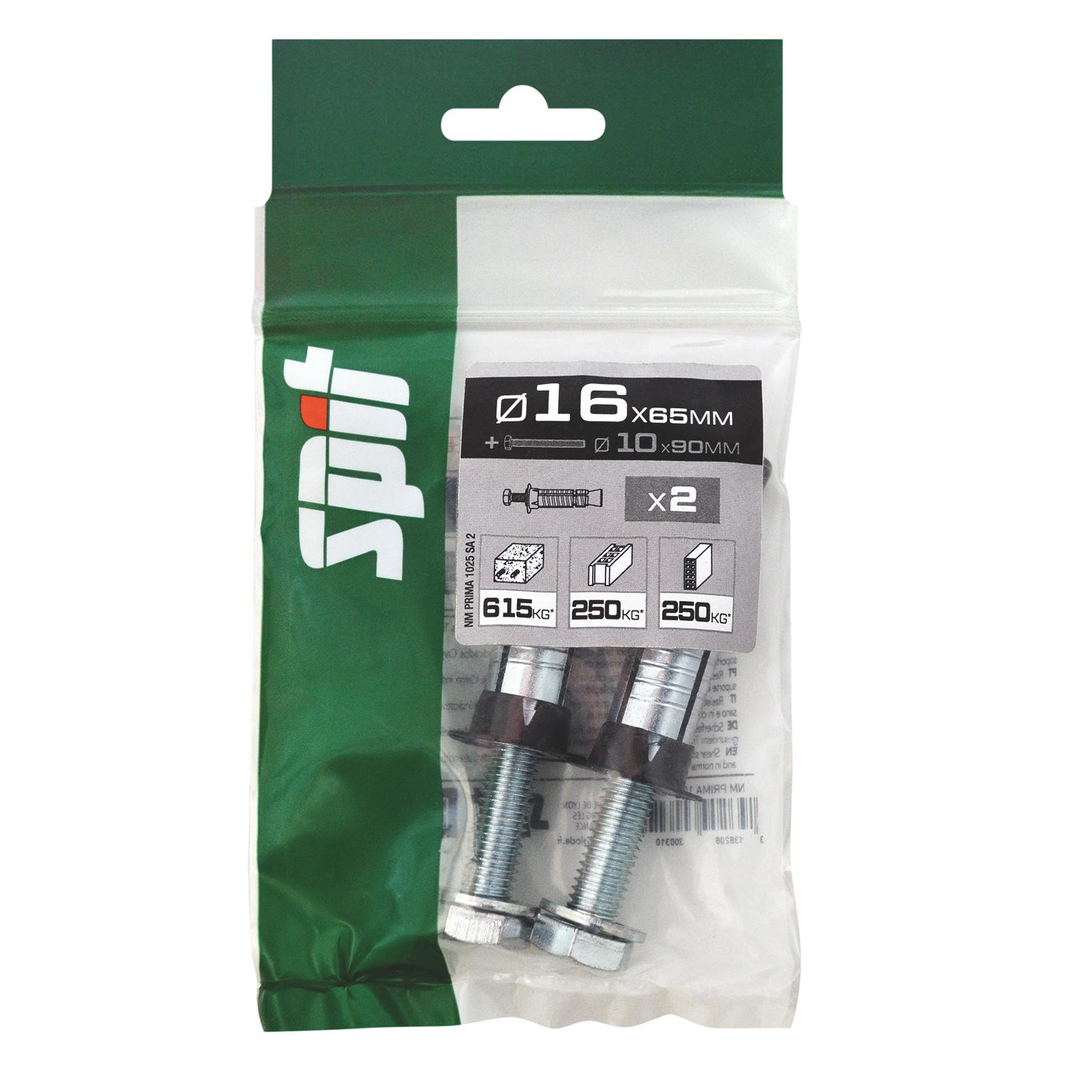 Cheville acier monobloc PRIMA SPIT avec vis TH Ø10x90MM Ø16x65MM - Sachet de 2 pièces