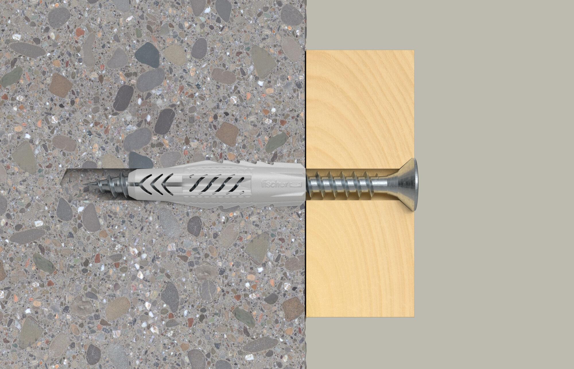 La cheville UX peut être utilisée dans tous les matériaux de construction pleins, creux ou en plaques grâce à son expansion ou la formation d'un nœud.