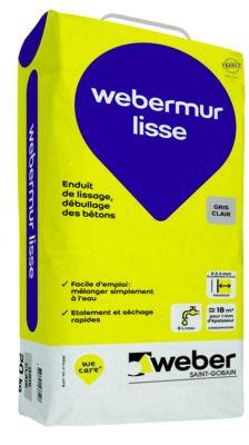 Enduit de lissage et de débullage du béton sur mur et plafond WEBERMUR LISSE 20kg