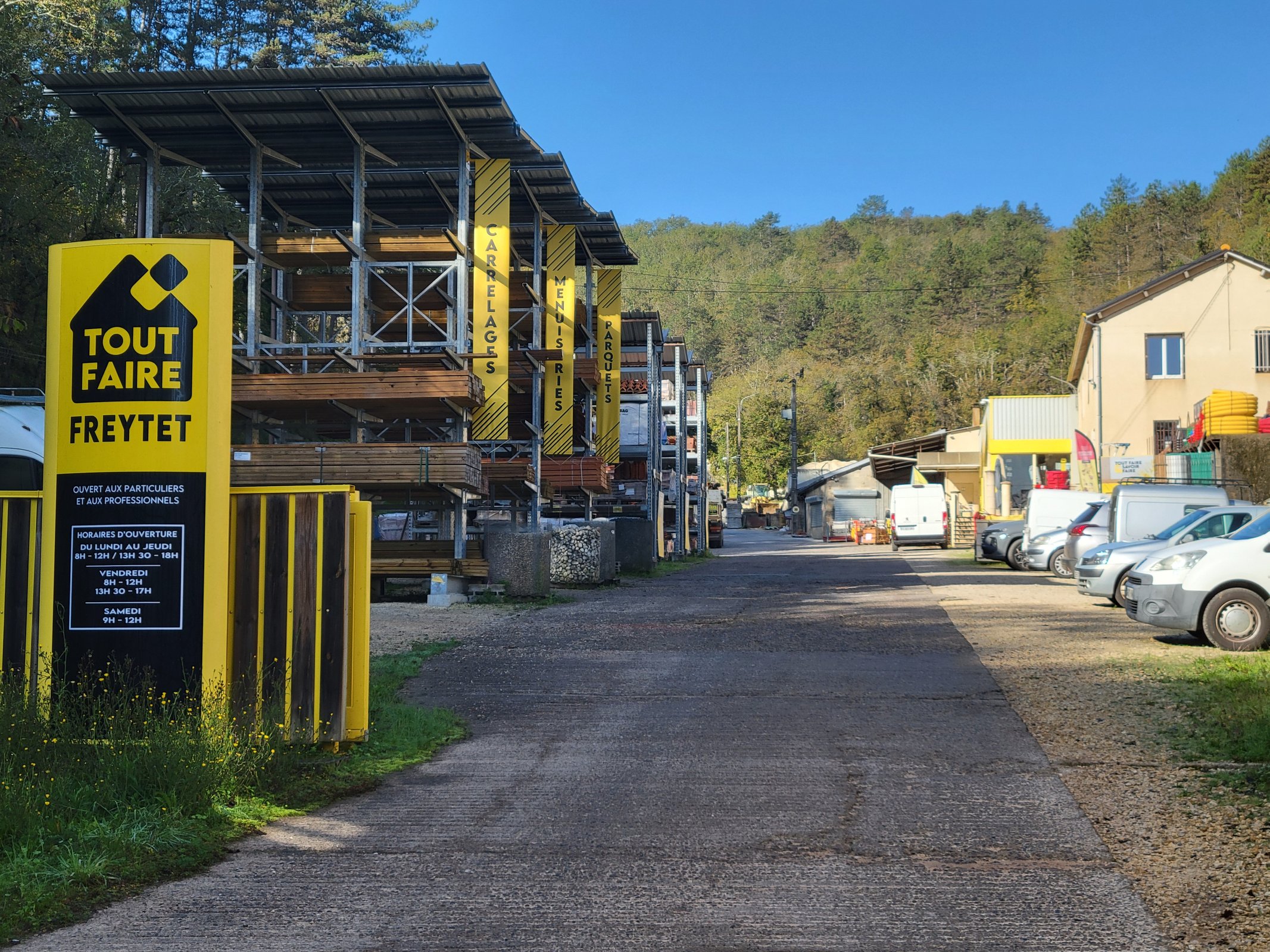 Situé à 30 minutes au sud de Sarlat-la-Canéda, dans la commune de Daglan, retrouvez votre magasin Tout Faire Freytet Bois et Matériaux. Nos équipes vous reçoivent du lundi au samedi midi pour vous guider dans la recherche des matériaux adaptés, que vous soyez un particulier en pleine rénovation ou un professionnel du BTP.