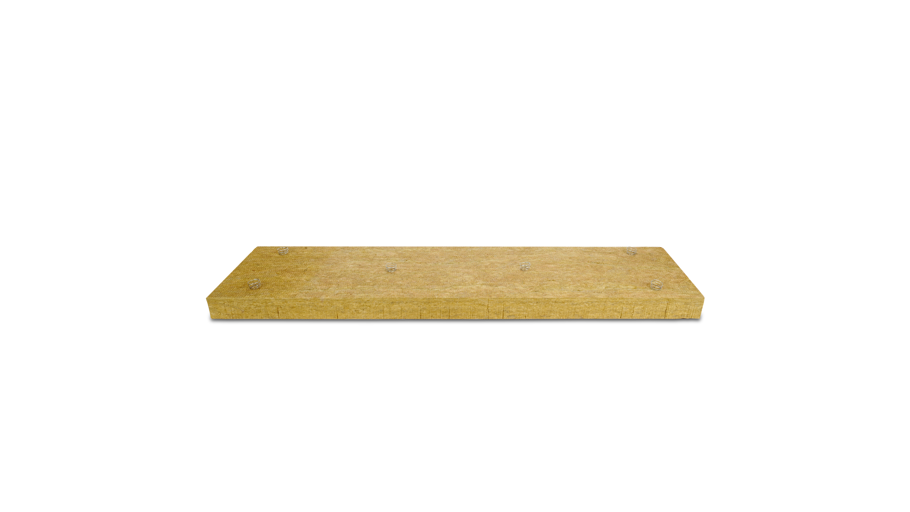 Panneau en laine de roche, rigide double densité non revêtu et équipé de 6 fixations intégrées.