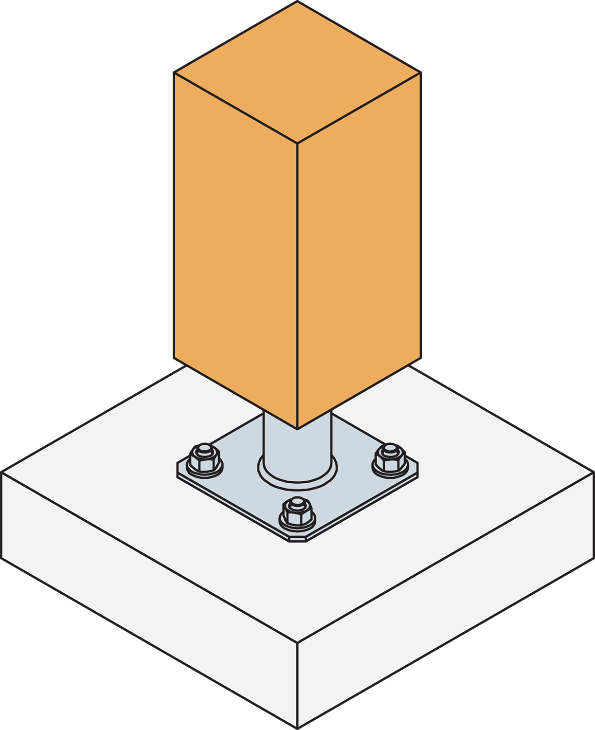 Aucun usinage nécessaire. Compatible avec les tirefonds et goujons Simpson Strong-Tie. Reprise de charge en soulèvement. Hauteur réglable grâce à la tige à sceller.