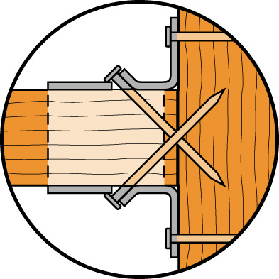 Utiliser uniquement sur connecteurs Simpson Strong-Tie® pour garantir les performances certifiées. Toujours enfoncer la pointe à fond pour garantir l’appui tête/acier. Marteau ou cloueur pneumatique compatible diamètre 4 mm. Ne pas utiliser en extérieur sans protection complémentaire (zingué = classe d’emploi 1). |
