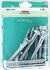 Tirefond Tête héxagonale Acier zingué 12x100 Blister de 15