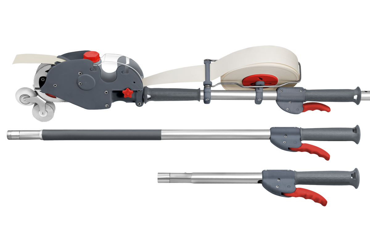 Permet la pose sur murs et plafonds, y compris les bandes à plat et les angles jusqu’à 3m de haut.