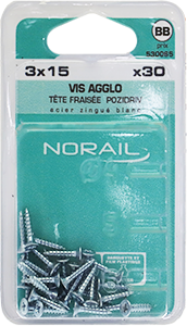 Vis agglo Pozidriv Tête fraisée Acier zingué blanc 3x15 Blister de 30